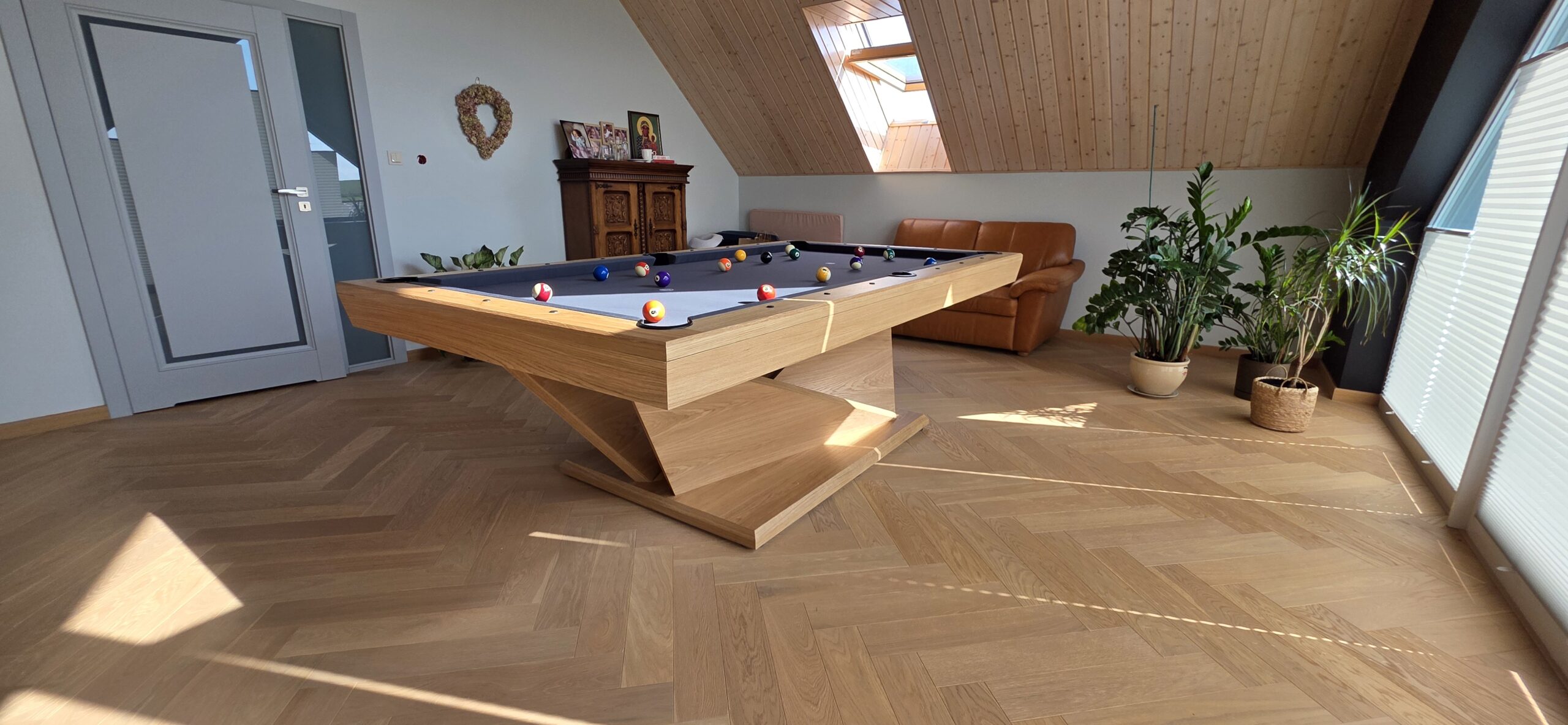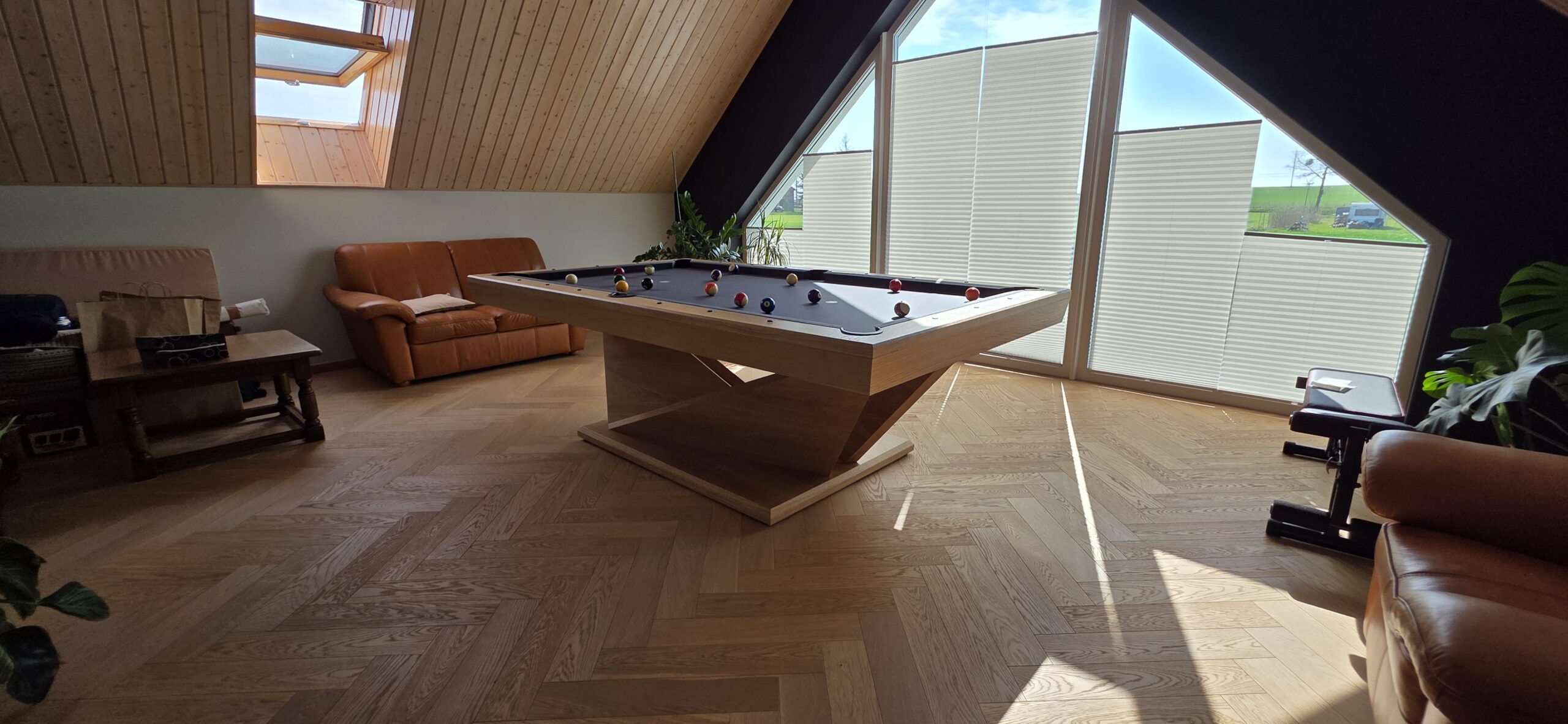 Łuzy i kosze skórzane zostały wykonane z grubej skóry, powoduje to efekt wytłumienia odgłosu bil wpadających w łuzę. Elementy skórzane nadają modelowi elegancję i prestiżowy wygląd. Mogą być barwione pod kolor stołu lub pozostać w naturalnej barwie.